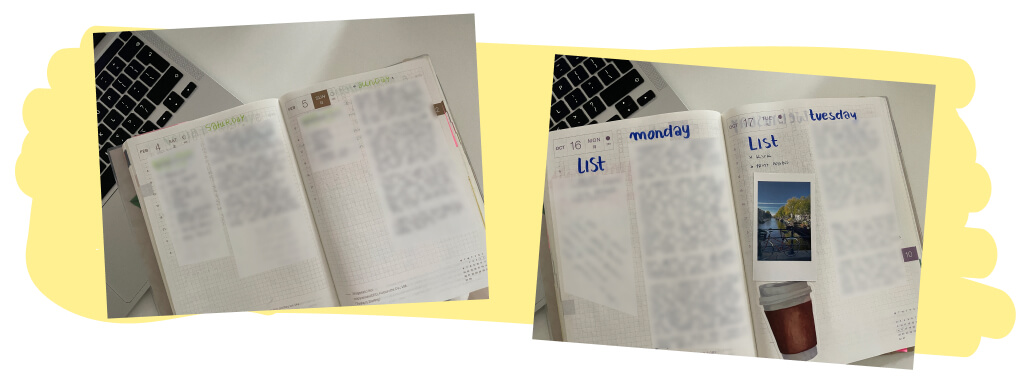 Próbowałam różnych rzeczy, ale nic mi się nie sprawdziło, więc ta część kalendarza stała się miejscem na notatki z rozmów kwalifikacyjnych. Do tego kalendarz jest dość duży i ciężki i nie lubiłam go nosić do pracy, bo jednak miałam tu swoje prywatne notatki, które spisuję po angielsku. Więc też nie chciałam żeby wpadł komuś w ręce.